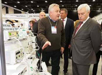 Георгий Полтавченко и Олег Кувшинников посетили отраслевые экспозиции форума. В том числе познакомились с продукцией петербургского некоммерческого партнерства «Кластер медицинского, экологического приборостроения и биотехнологий», которая, как подчеркнул Георгий Полтавченко, по ряду позиций не имеет аналогов в мире.