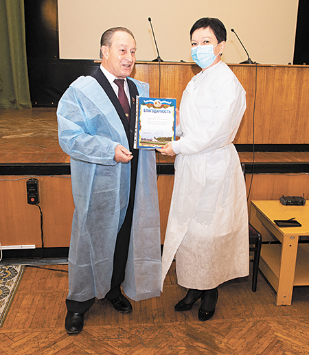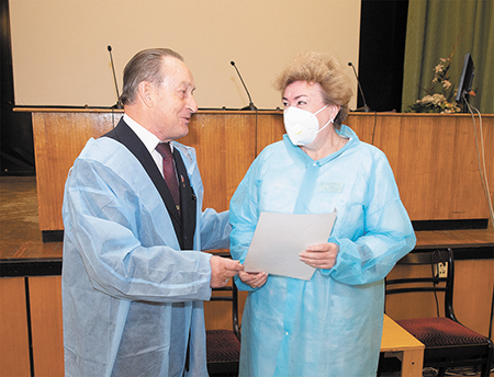 Василий Волобуев рассказал, что недавно общался с ветераном, Героем социалистического труда. Членом Союза писателей Татьяной Михайловной Захаровой, и она попросила передать врачам и медперсоналу госпиталя огромное спасибо за неустанный, героический труд.Василий Волобуев вручил Почётную грамоту коллективу госпиталя «За большой высокопрофессиональный вклад в сохранение и укрепление здоровья ветеранов Санкт-Петербурга, в борьбу с эпидемией коронавируса».
