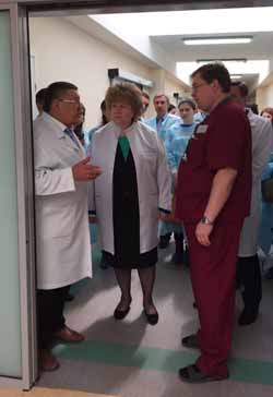 В рамках своего визита вице-губернатор осмотрела отделение анестезиологии и реаниматологии, которое после проведенных в 2014 году модернизации и ремонта соответствует отделению интенсивной терапии многопрофильного стационара крупного европейского города. Благодаря обновленному отделению потоки больных и пострадавших, поступающих в НИИ по экстренным показаниям, оптимизировались, в частности теперь у врачей есть возможность производить одновременно два оперативных вмешательства при сочетанной травме пациента. Шире и эффективнее используется современная реанимационно-анестезиологическая аппаратура, например аппараты искусственной вентиляции легких экспертного класса и современная аппаратура мониторинга.